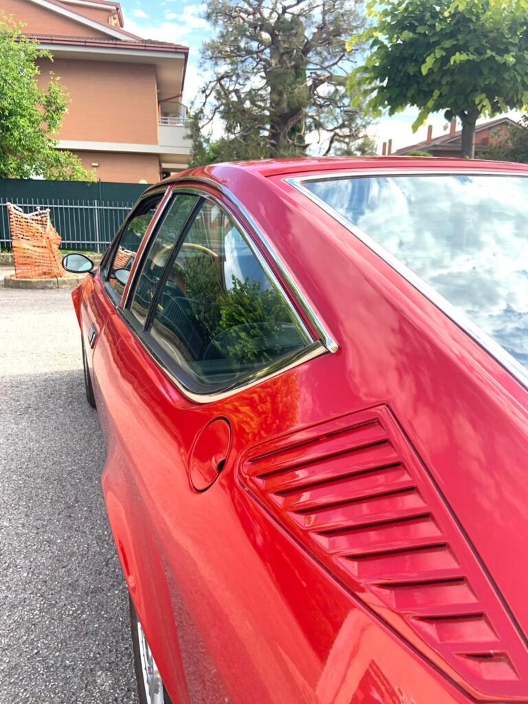 Descrizione: L’Alfetta GT 1800 è stata progettata da Giugiaro e introdotta nel 1973. Il primo modello 1800 è riconoscibile per il nome del modello in alto a destra sul cofano del bagagliaio e per il coperchio di riempimento del carburante sul retro sinistro. Con l’introduzione dell’Alfetta (Berlina) nel 1972, l’Alfa Romeo introdusse il nuovo cambio “transassiale” montato sull’asse posteriore, che consentiva una distribuzione del peso quasi perfetta 50/50. L’Alfetta è inoltre dotata di sospensioni completamente indipendenti, di un blocco motore in alluminio con doppi alberi a camme, freni a disco tutt’intorno e un cambio a cinque marce. Un pacchetto molto sportivo! Il contachilometri è attualmente di 12.238 km. Questa Alfetta GT è in ottime condizioni e l’auto si guida perfettamente! La carrozzeria è completamente inossidabile e alcuni anni fa è stata rinnovata e completamente nel colore originale. Tutte le saldature a punti originali sono ancora visibili. Gli interni sono in perfette condizioni, così come i bellissimi cerchi in lega Alfa Speedline. Tra il 1973 e il 1976 furono prodotti un totale di 21.947 esemplari della GT 1800, e oggi la GT 1800 è una rarità. Questo splendido esemplare è una scoperta fantastica per gli appassionati di Alfa Romeo. Questi primi modelli di Alfetta GT sono molto difficili da trovare! Disponibile per la vendita.