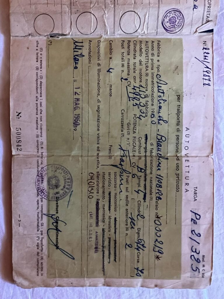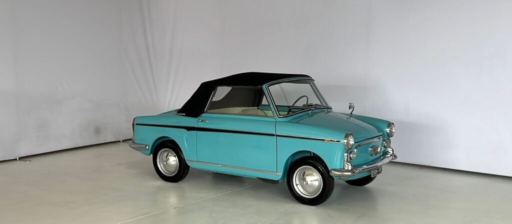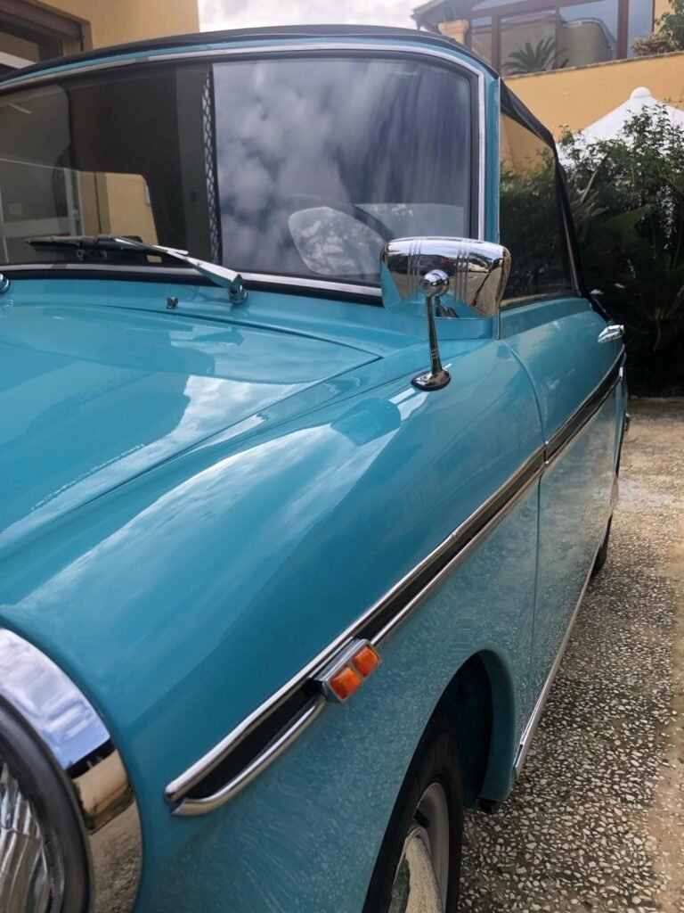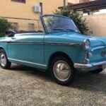 Descrizione: Il progetto Bianchina cabriolet risale al 1959 e porta la firma dell’ingegner Luigi Rapi, passato dal reparto carrozzerie speciali della Fiat alla Autobianchi. Il primo esemplare cabriolet risale addirittura al 1958: su una scocca di trasformabile tagliata nel padiglione superiore viene alloggiata una capottina. Questo prototipo, richiesto da un eccentrico miliardario statunitense, non ha però seguito. Solo l’anno successivo Luigi Rapi studierà la carrozzeria ex novo per creare una vera e propria cabriolet in grado di uscire dalla catena di montaggio. La direzione commerciale Autobianchi è convinta che questa bianchina cabriolet di serie (la più piccola del mondo) possa rappresentare un buon investimento, anche per i mercati stranieri. Questo esemplare da noi proposto è stato immatricolato nel Maggio del 1960 pertanto si può definire un “ pre serie “. Veicolo molto raro e ricercato. È stato il 219ª costruito da casa Autobianchi. Dopo anni di ricerche non ci è mai capitato di trovarne uno con numero di telaio più basso di questo proposto. Si pensa sia la Bianchina Cabriolet con numero di telaio più basso rimasta in circolazione. Acquistata da noi nel 2021 ha subito un restauro totale e professionale. Disponibile per la vendita.