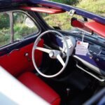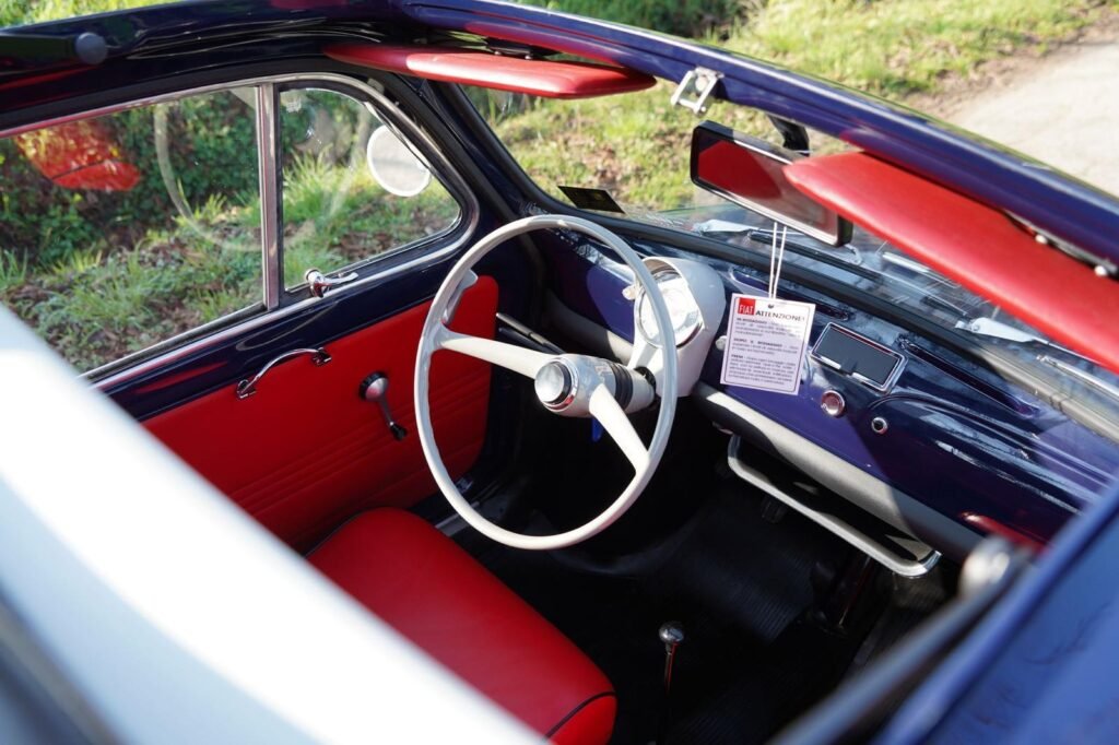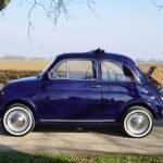 Descrizione: Nel 1965 venne presentata la Nuova Fiat 500 F, erede della Fiat 500 D, che divenne la versione più venduta tra tutte le Cinquecento prodotte. La 500 F si distingue per il passaggio alle portiere con cerniere anteriori (“porte controvento” eliminate) e per le modanature cromate semplificate rispetto alla precedente versione D. Il design ha mantenuto le linee classiche, ma con miglioramenti come il parabrezza più ampio, il tetto posteriore integrato nello stampo e le nuove maniglie a pulsante. Gli interni erano semplici, con strumentazione rotonda chiara e, dal 1968, rivestimenti a tinta unita. Esternamente, la versione F ha visto una riduzione delle cromature rispetto alla serie precedente, con l’uso di plastica per alcuni dettagli come la luce targa dal 1966. La 500 F ha rappresentato la definitiva consacrazione della utilitaria italiana, con oltre 2 milioni di esemplari prodotti tra F e L.